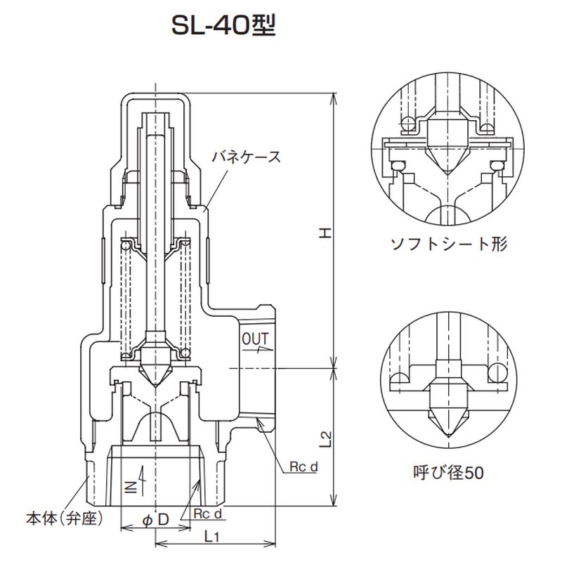 バネケース・要部SCS、バネSUSの耐食性に優れた、密閉タイプの安全逃し弁です。