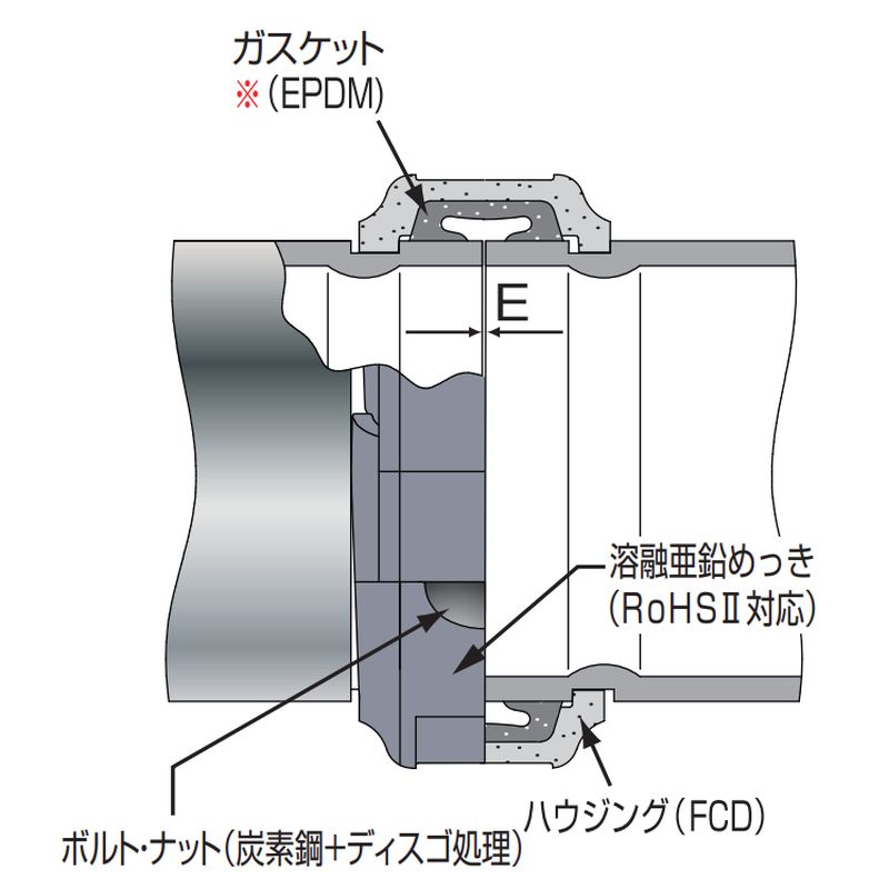 凹を設けることにより、R−5・R−11に備えている伸縮可とう性を抑制した継手です。