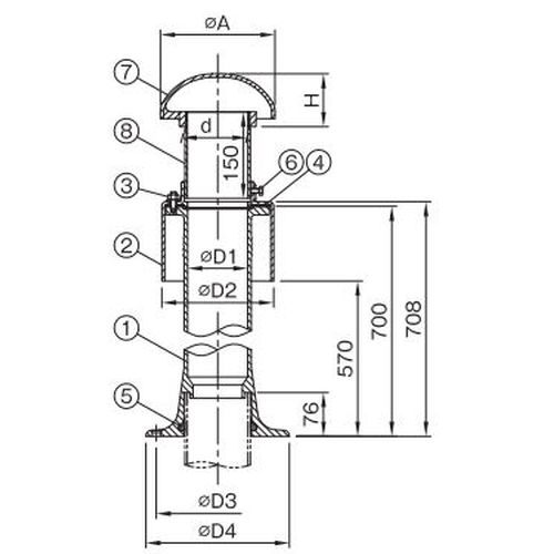 部番Eボルトは〈呼び65〜100〉:M8×16、〈呼び125・150〉:M8×20になります。