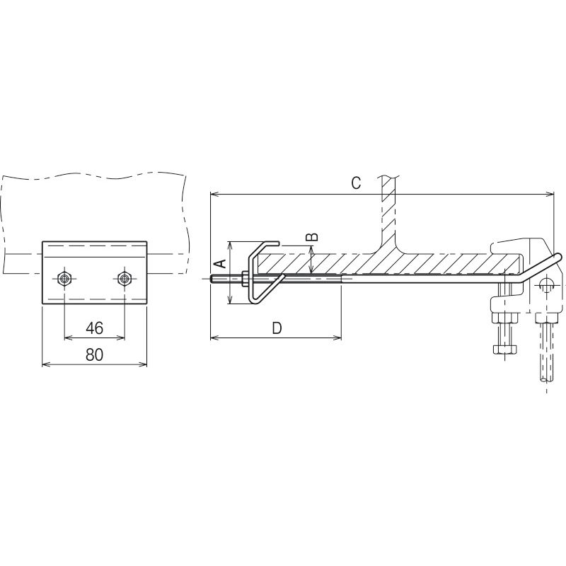 H形鋼にHB50施工時の水平方向に対して、外れにくくするための補強金具です。