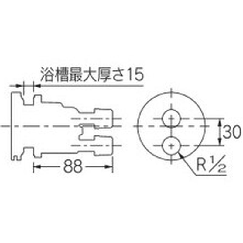 取付穴径50ミリ・厚さ15ミリ以下の浴槽用