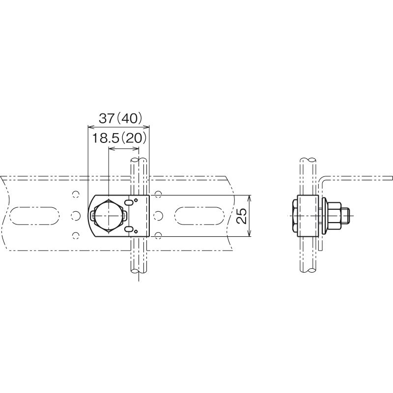 長穴付きアングルの片側だけの施工はしないでください。両側1組で使用してください。落下の恐れがあります。