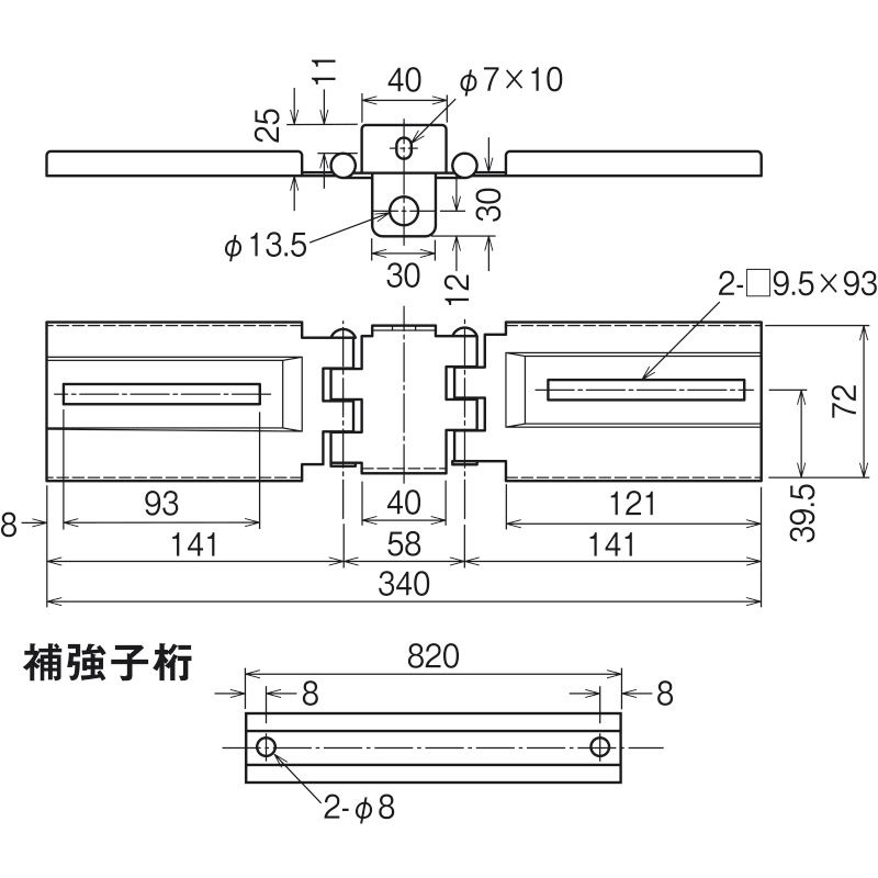 補強子桁が一本付いています。ご使用の際は必要な長さに切断し、穴をあけてお使いください。