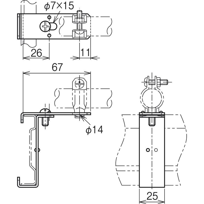 SRPS1 親桁用管支持金具(水平配管用)