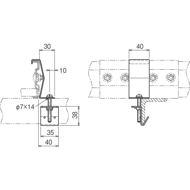 置き基礎等で施工されたアングル架台には使用できません。ボルトの締め付けによって、架台が傾くことがあります。アングル架台には、□-SRS1L□をご使用ください。