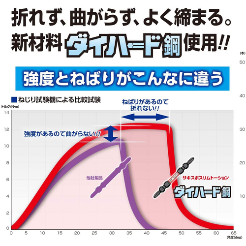 ●折れにくい、曲がりにくいのはもちろんのこと、トルクを正確に確実に伝えられるので、しっかりとネジを締めることができます。