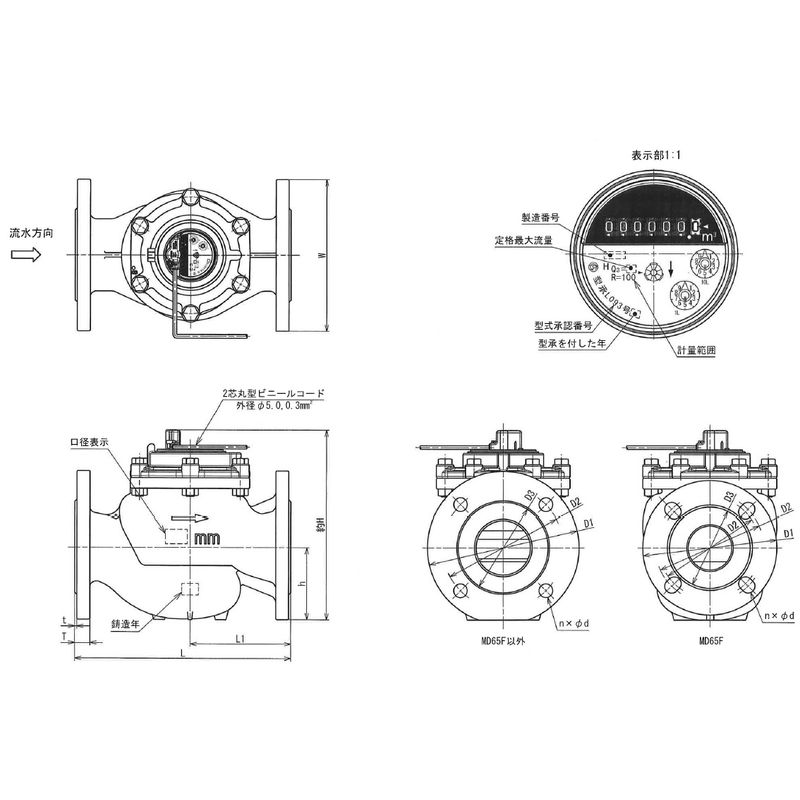 MD パルス発信式乾式水道メーター 大口径 本体(タイプF)(パッキン付) 上水フランジ
