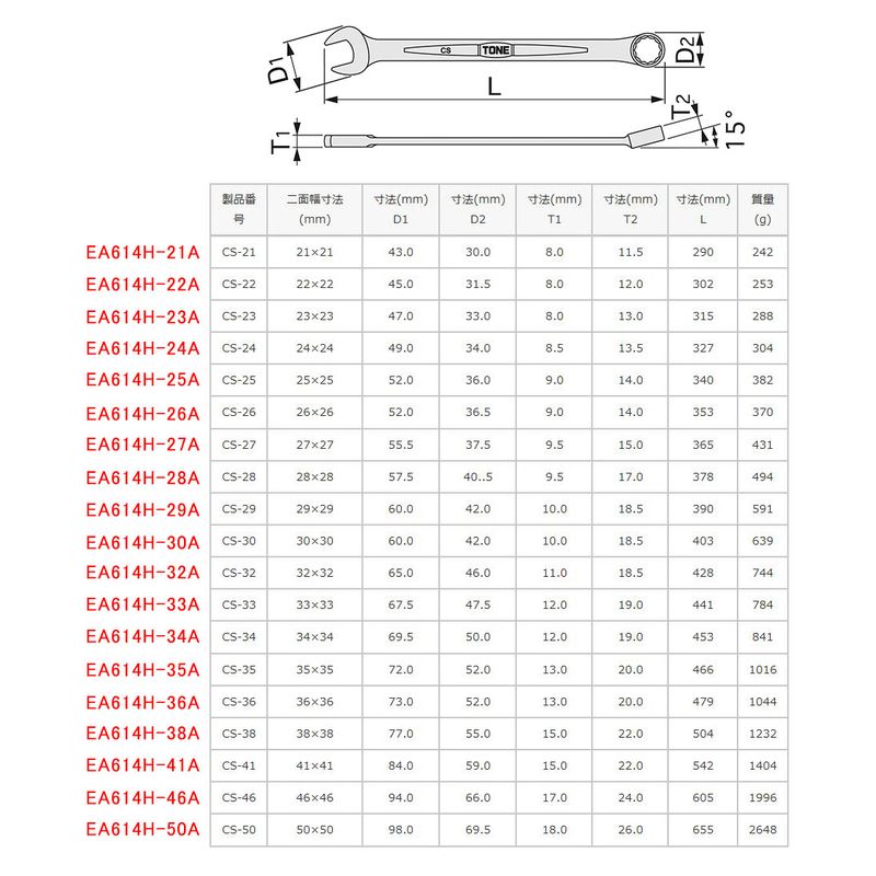 EA614H-23A 23mm 片目片口スパナ