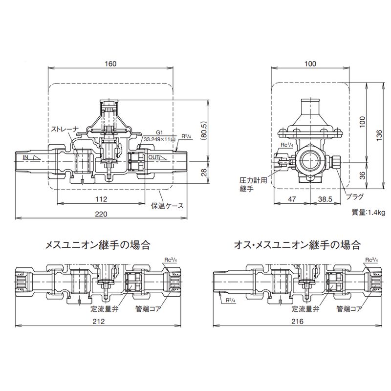 ユニオン継手(パイプ・ナット・ガスケット)、保温ケース(自己消火性)、テストガグ、圧力計用継手(二次側用で、本体取付け済み)