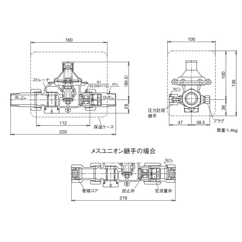 ユニオン継手(パイプ・ナット・ガスケット)、保温ケース(自己消火性)、テストガグ、圧力計用継手(二次側用で、本体取付け済み)