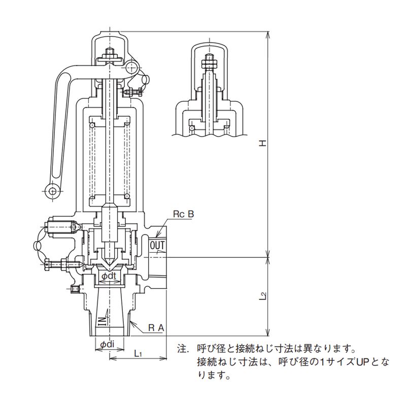 接続ねじ寸法は、呼び径の1サイズUPとなります。