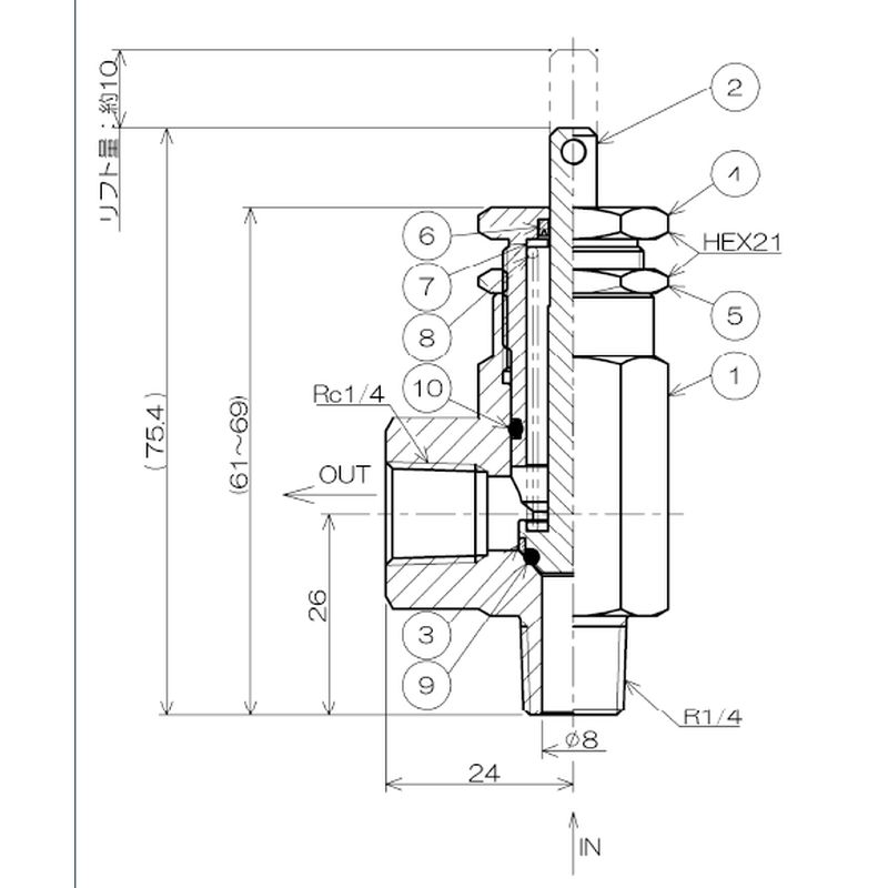 RM1B2V リリーフバルブ RM1シリーズ〈外部クラッキング圧力調整型〉【ブラス・FKM】