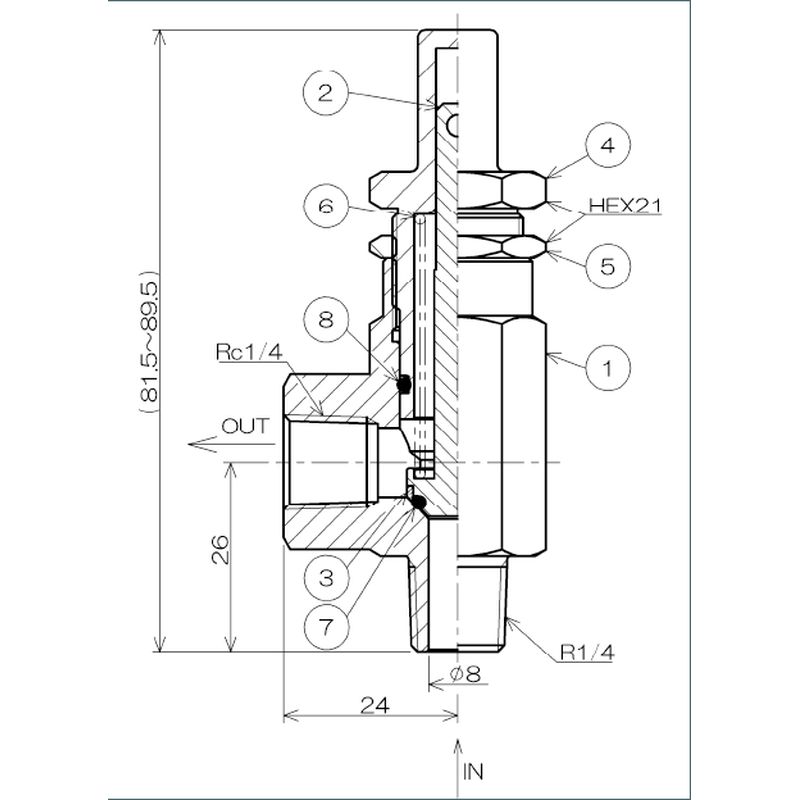 RM2T2V リリーフバルブ RM2シリーズ〈外部クラッキング圧力調整型〉【SCS14(SUS316相当)・FKM】