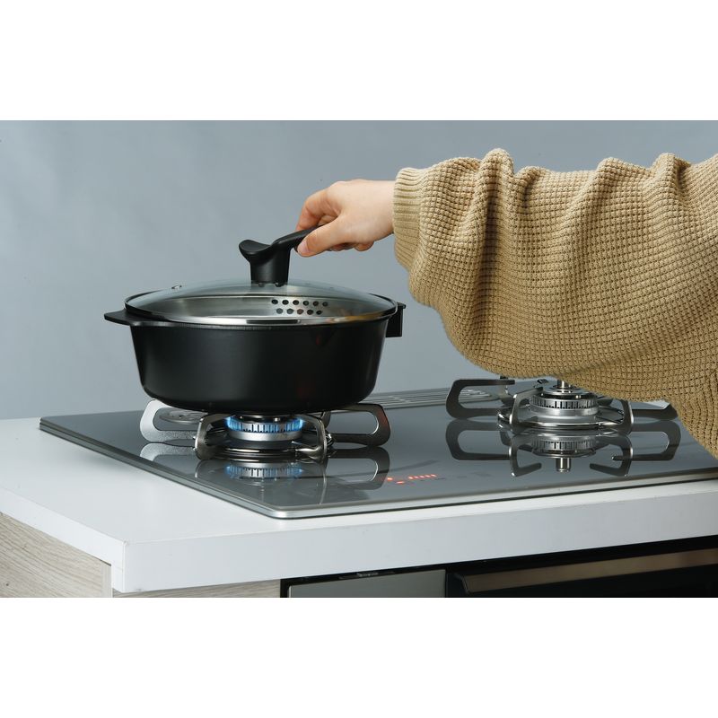 同じ便利機能を左右に搭載。バーナー位置も奥に配置することで、安心と使い勝手を追求しています。