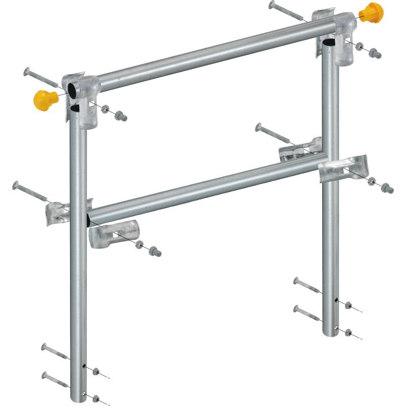 歩廊架台本体を床面や基礎側面へアンカーボルトで固定するなどの転倒防止対策を施してください。転倒によりケガの恐れがあります。
