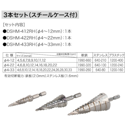 DSHM-3RH HQステップドリルセット(マーキング/3個入)