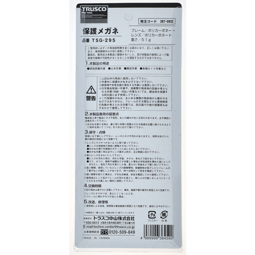 TSG-295 一眼型セーフティグラス(通気孔付・オーバーグラスタイプ)