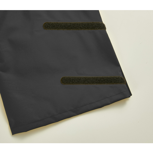 防水・透湿・防風、反射材付(背面・袖横)、洗濯機使用可、ウエスト調整ひも付、裾にベルクロ付