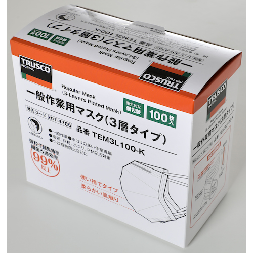 TEM3L100-K 一般作業用マスク 耳掛けタイプ3層 100枚入 個包装