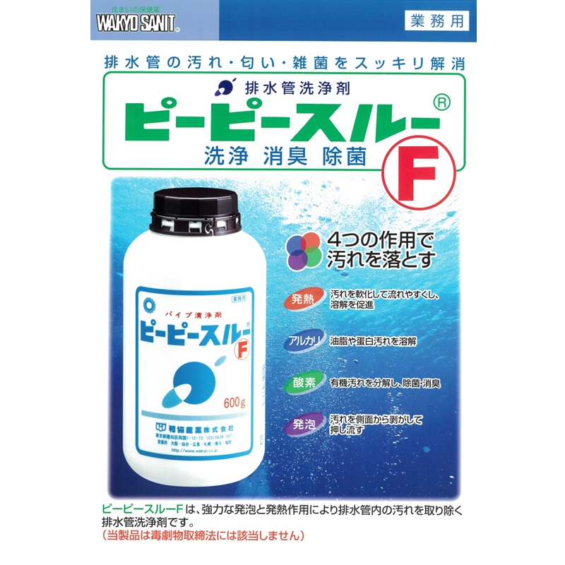 強力な発泡と発熱作用により流し場、浴場、洗面所などの排水管の内部に付着した汚れを取り除く、業務用のパイプクリーナーです。