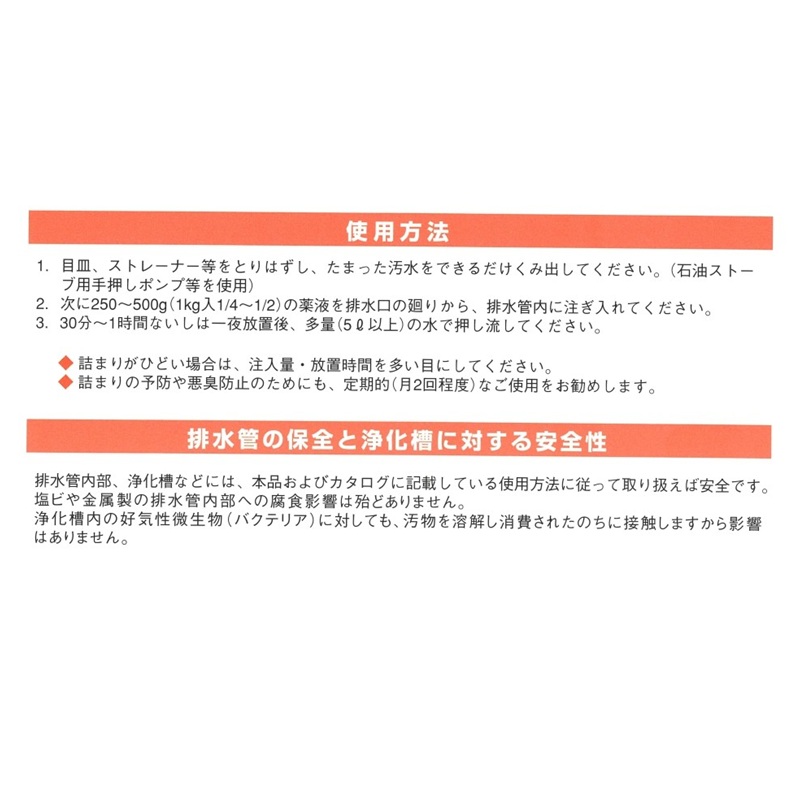 流し場、浴場、洗面所などの排水管の詰まり・悪臭を予防する、液状のパイプクリーナーです。