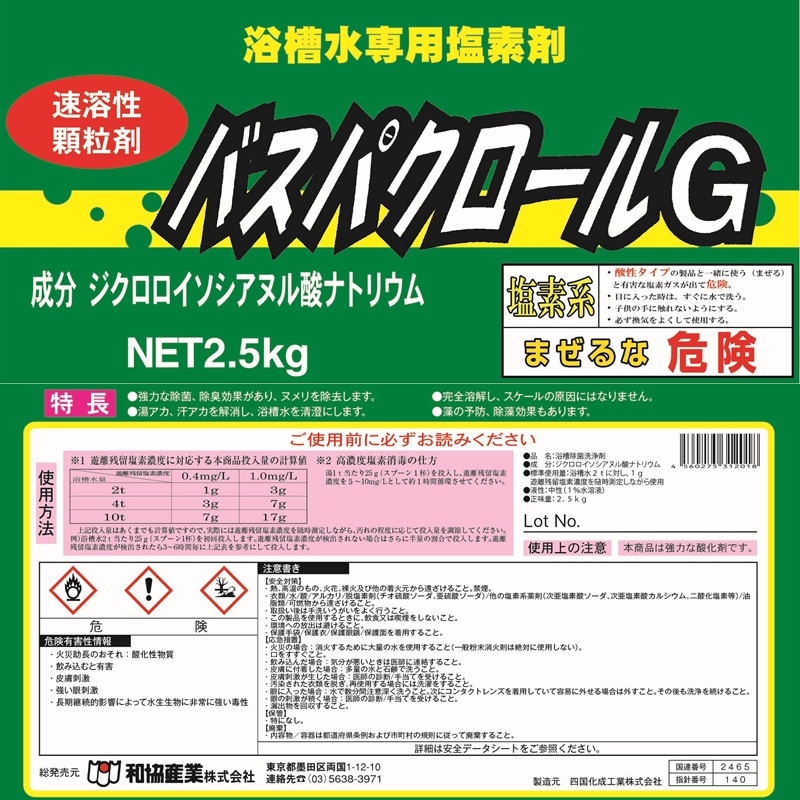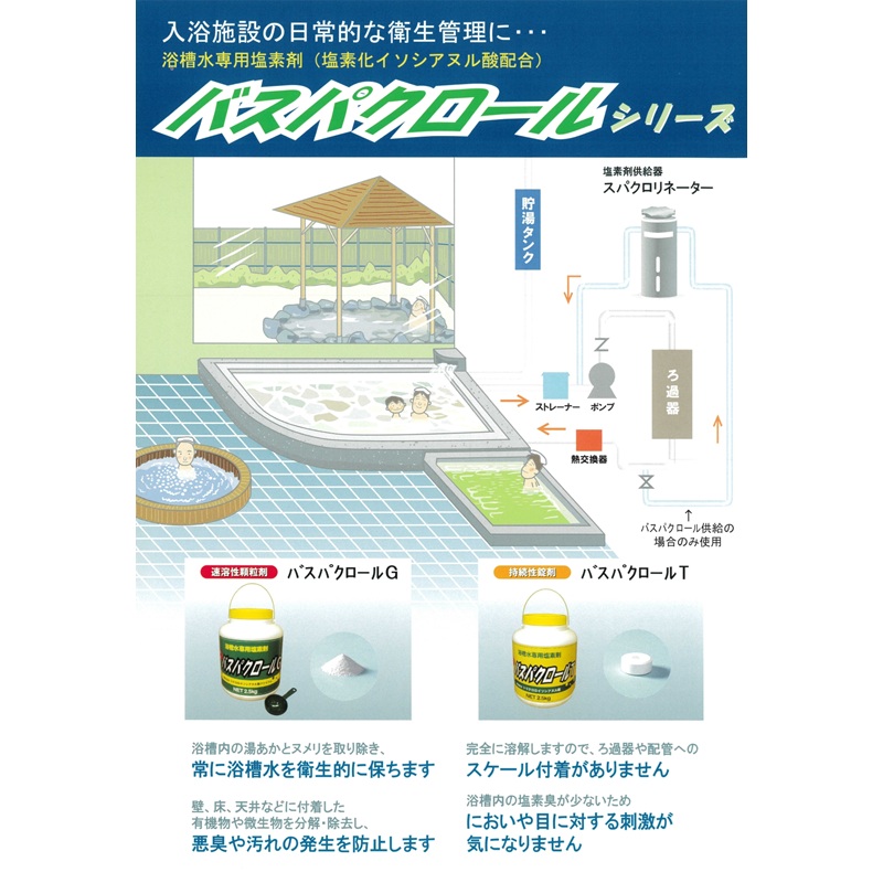 また湯あか、汗あかを解消しますので、浴槽水の日常的な水質管理にも最適です。