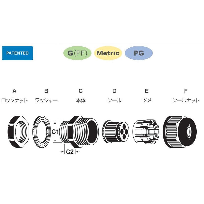 210-8010 多芯型ケーブルグランド(4芯) グレー色 長足-多芯型