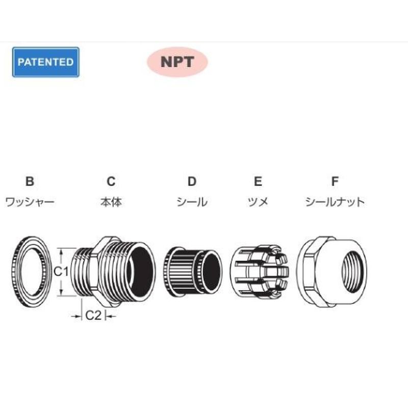 220-2010 メタルケーブルグランド(NPTネジ) 光沢シルバー 真鍮・ニッケル鍍金
