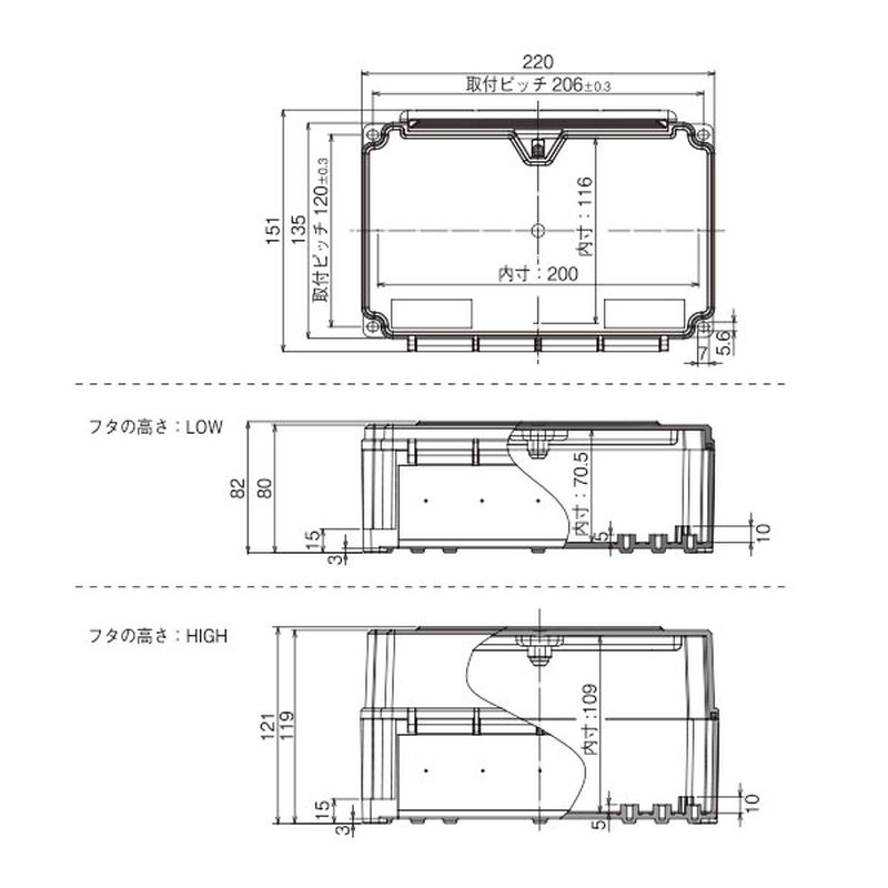 JB-WLQ 防水型中継ボックス 大型 フタ蝶番タイプ(220サイズ) 穴開け 圧力調節プラグ付