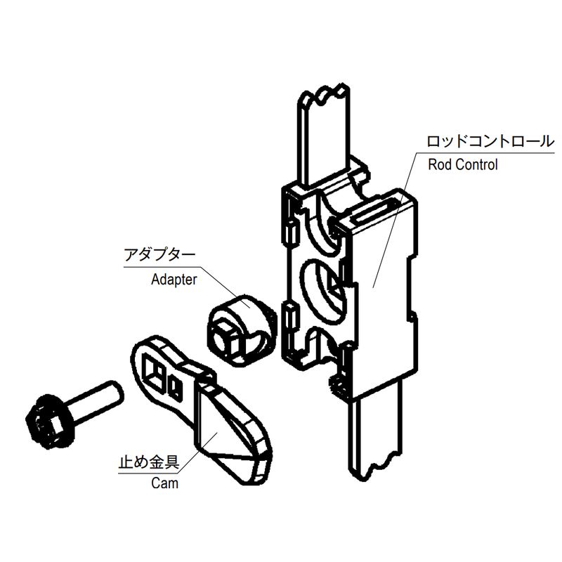 アダプターを使用すると止め金具とロッドコントロールを接続できます。