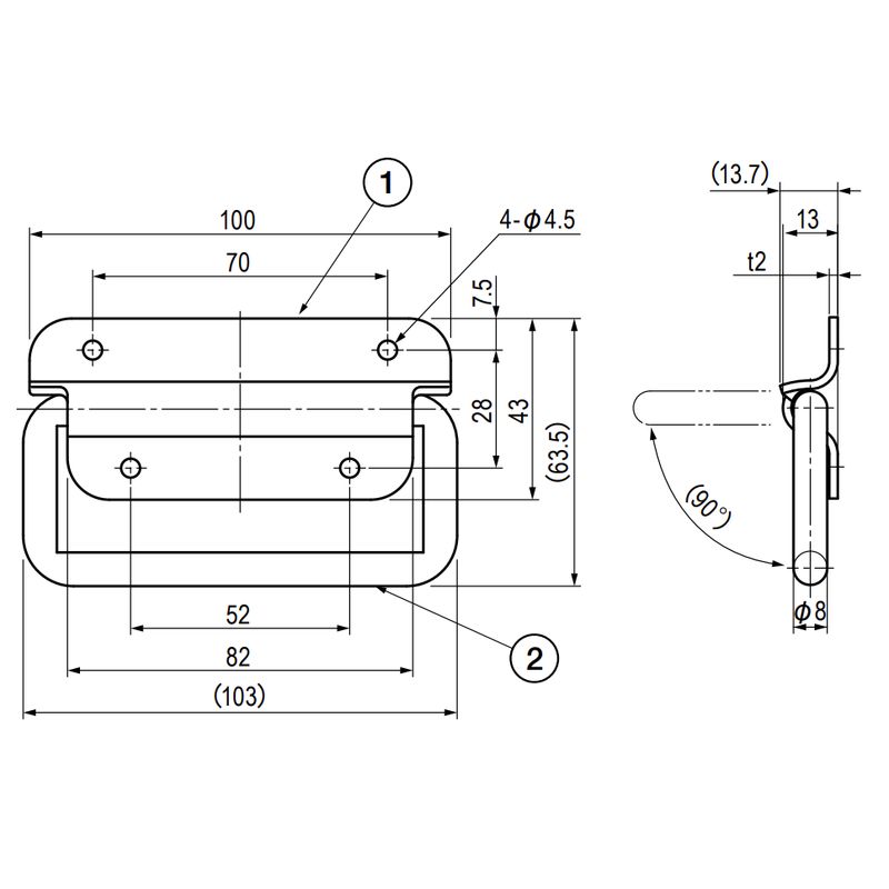 シンプルなアーム式取手です。