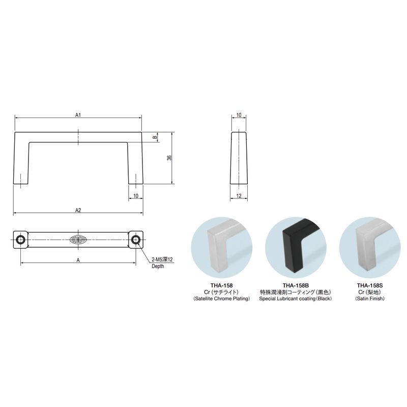 サチライトクロム仕上げ・梨地クロム仕上げ・黒色塗装仕上げの3種を取り揃えております。