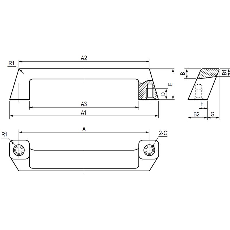 グリップ部が傾斜して握り易い取手です。クロム仕上げ・梨地クロム仕上げの2種類を取り揃えております。