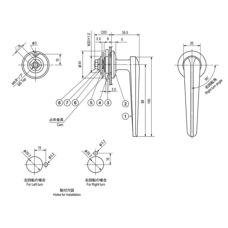 左右兼用型のL型ハンドルです。