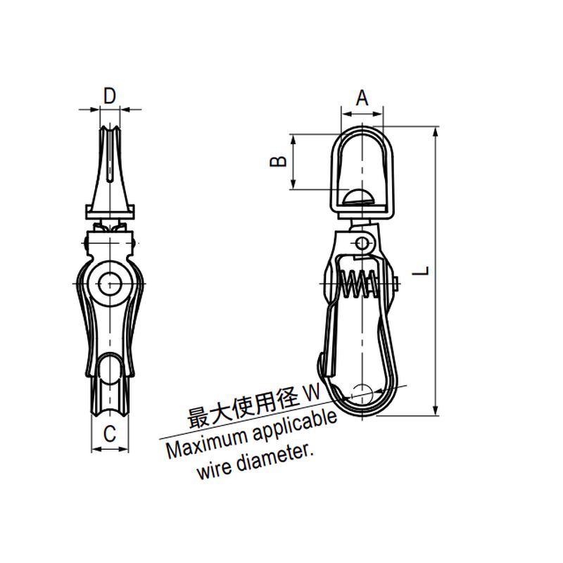 フック部と、ヘッド部分が360°自在に回転しますので、ヨリ・ネジレ等が掛かりません。ストッパー付ですので、ワイヤロープ等の外れる心配がありません。