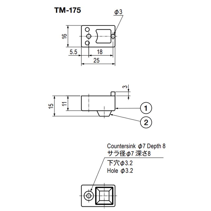機器の操作面を見やすくするための支持足です。使用しないときは、アームを後方へ回転収納できる構造で、アームは前後ともにストップ機構があります。また、TM−175単品にてゴム足としてもご利用ください。