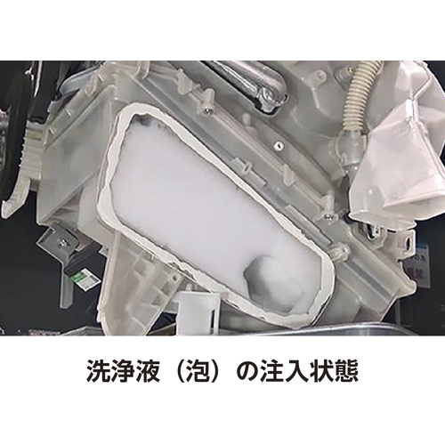 排水ドレンホースまたは、クリーンエアフィルター挿入口から直接エバポレーターを泡の力で強力洗浄します。