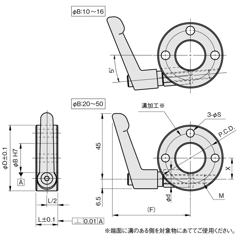 SCK□CP3S クサビカラー 3穴 レバー付 黒染め