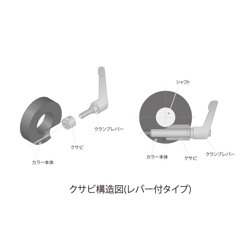 クランプレバー(ねじ部:SUM22L/黒染め、レバー部:亜鉛ダイカスト/静電塗装シルバーグレー)