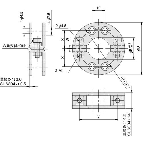 B□SP4 丸シャフト用 4穴付 SUS304