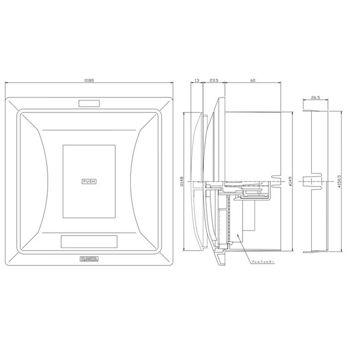 KS-□40PR3-SG 屋内換気口 断熱密閉/プッシュタイプ シルバーグレー