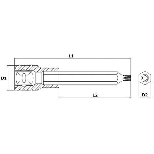 1/2"SQ ロングヘックスローブビットソケット