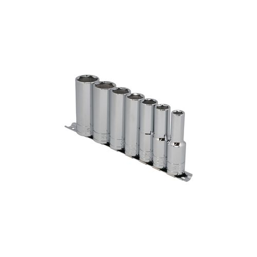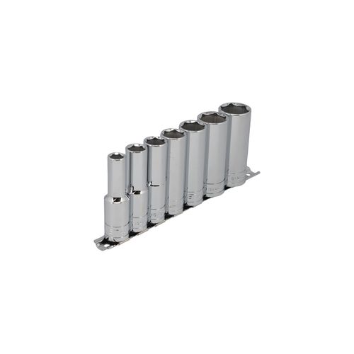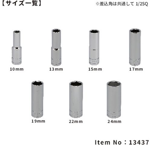 ミラー仕上げのメッキが美しいディープソケットセット。