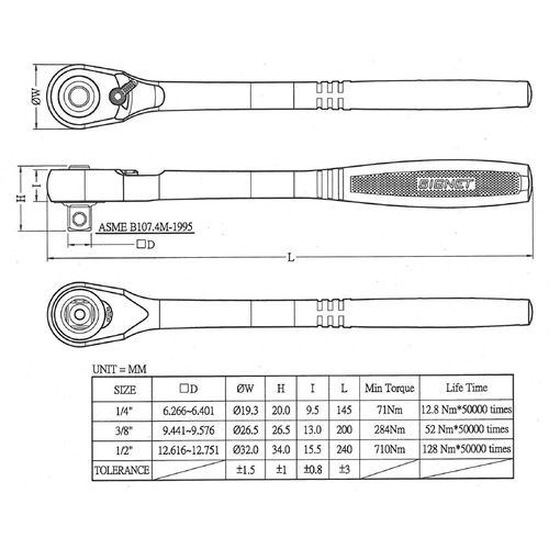 12560 3/8"SQ 超小型ヘッドラチェットハンドル