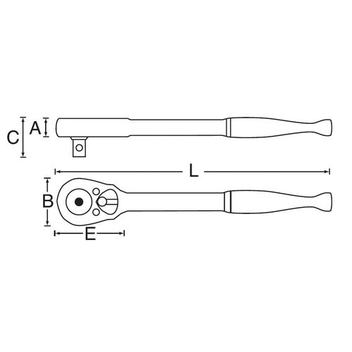 ミラー仕上げのメッキが美しいラチェットハンドル。