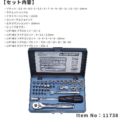11738 1/4"SQ 38PC ソケットレンチセット