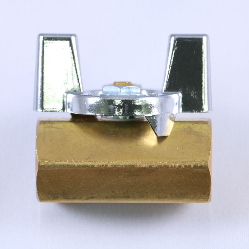 高強度な鍛造ボディ採用、エア(水)抜穴付の黄銅製ボールバルブ。圧力計を保護、蝶ハンドル型により狭所配管に最適です。