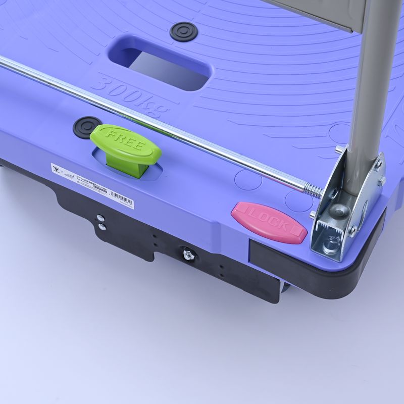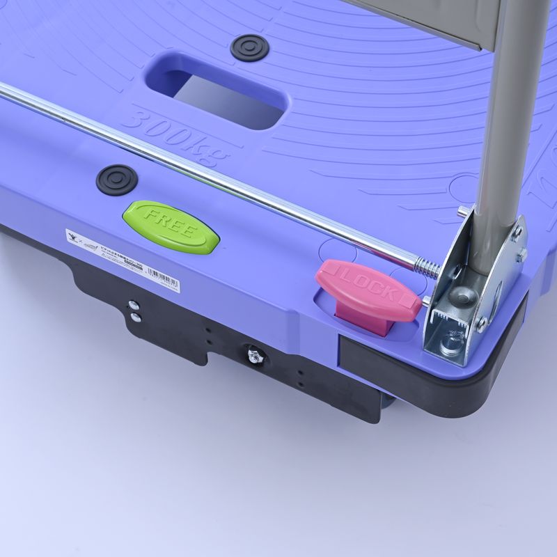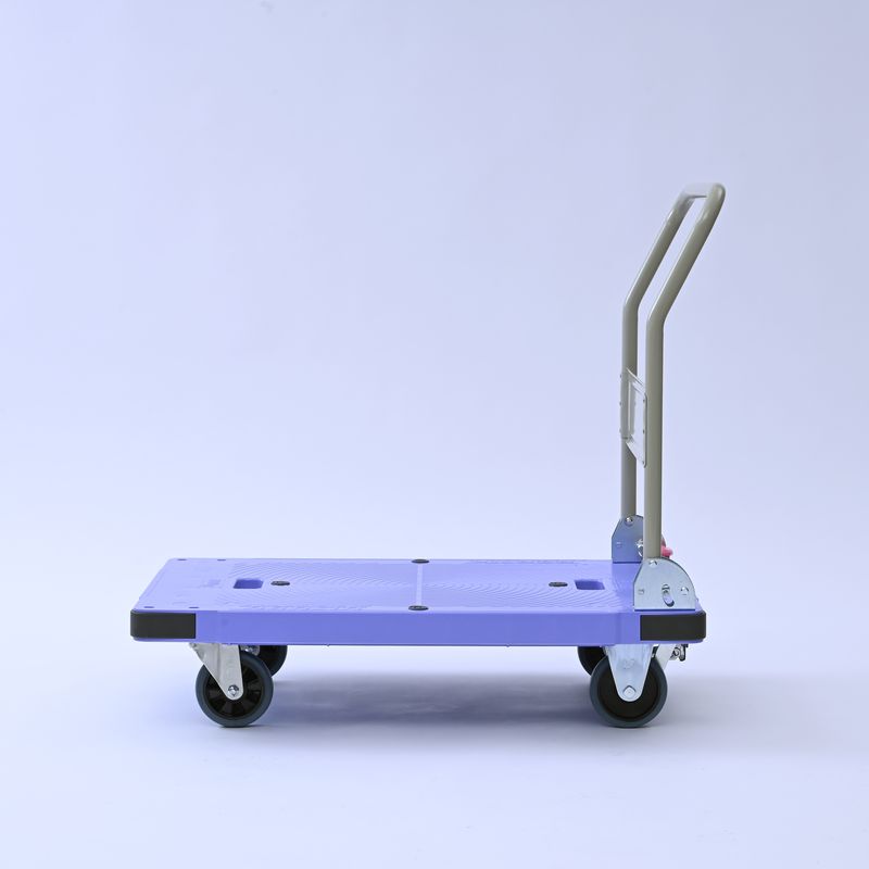 驚くほど静かな台車です、安心のプッシュ式ブレーキ付き