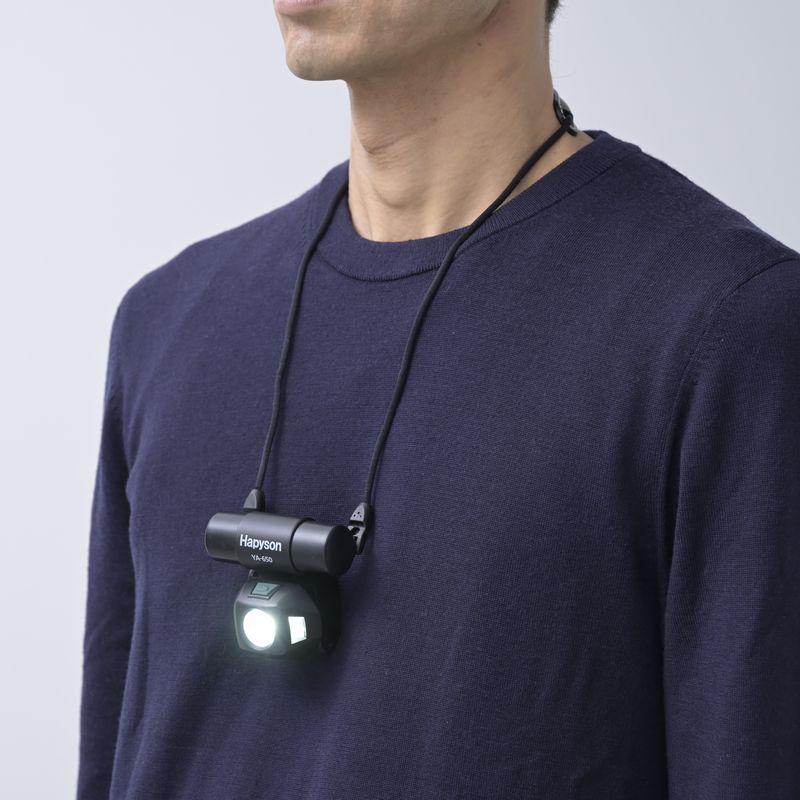 頭部への締め付けがない首掛け式、手元や足元をしっかり照射