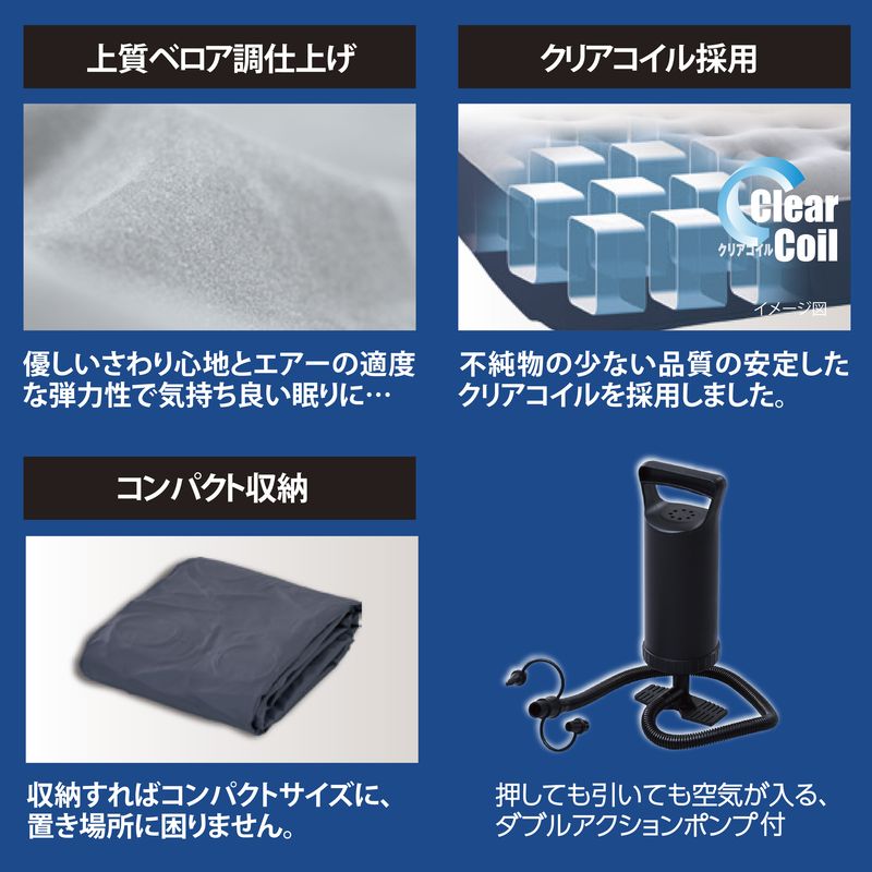 NAB-001(GY) 防災にも使えるハンディポンプ付きエアベッド